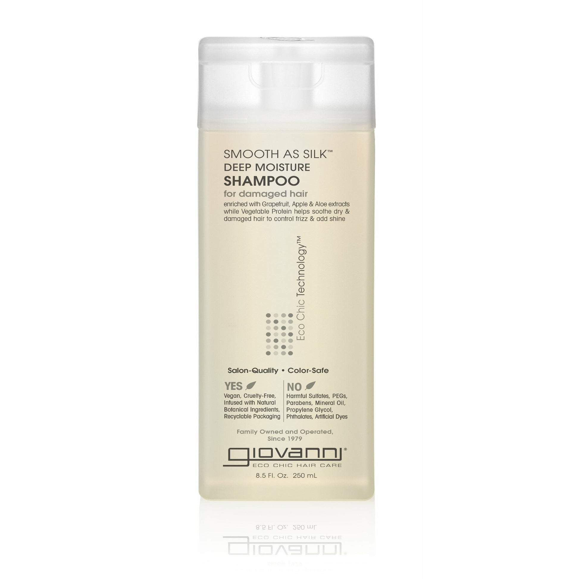 Soft and smooth, sexy and sultry. SMOOTH AS SILK™ Deep Moisture Shampoo from Giovanni has a pearlized formula that glistens in your hand and transforms your hair into a silky palette. This new and improved Eco Chic® formula with Apple and Aloe extracts provides antioxidant protection and enhanced moisturizers for even silkier hair. Lather and glow with the flow that begins your style. SMOOTH AS SILK™ Deep Moisture Shampoo wears beautifully on you.